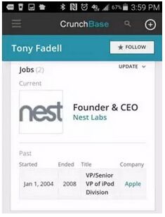 事实上,TonyFadell在硅谷被冠以名号是“iPod之父”。而Nest这家公司,被CrunchBase列入TeamMember的,奇怪,真的清一色是VP或VP以下。